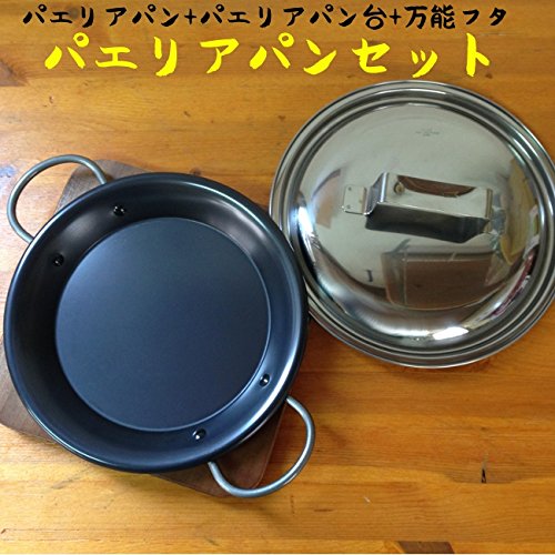 出典: https://item.rakuten.co.jp/yakannya/paeriaset-1/【鍋サイズ】パエリアパン/底径180mm、パエリア木台/240x240mm、18-0万能蓋/外径260mm