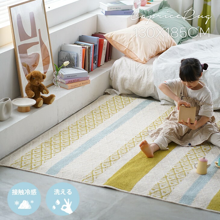 カプリスレーヨン・綿混ラグはポリエステル37%、ポリプロピレン26%、綿11%、レーヨン22%、その他4%でお手入れ方法は、洗濯機で洗える敷物で汚れたら丸洗いができ、毎日清潔に使用できます。防ダニ加工で快適安心仕様です。裏面がフローリングを傷めにくい不織布張りになっています。