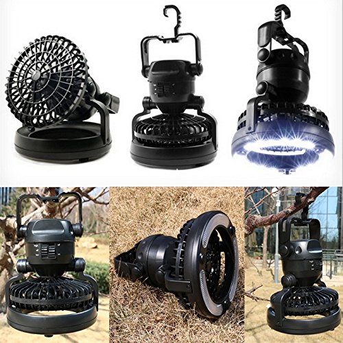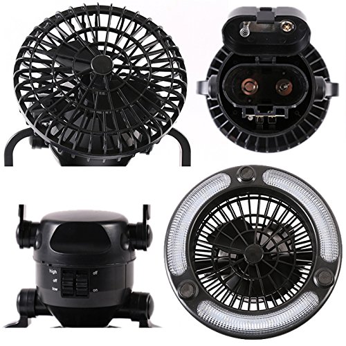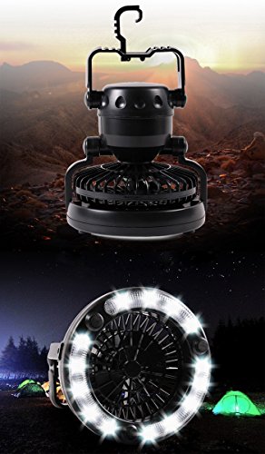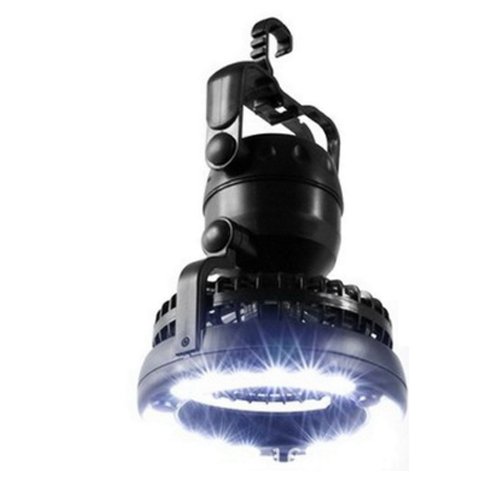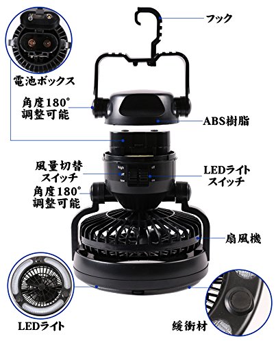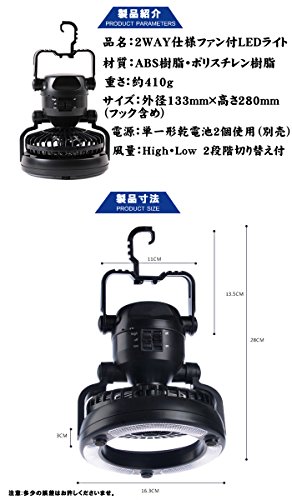 送風機とランタンの2ウェイ商品です。テントの中の空気を移動させて涼しくするだけでなく、ライトにも使えるのは荷物を少なくしたいキャンプ用品としては優秀。普段は照明に使って、就寝時明かりが必要なくなったら風を送ってくれます。使用電源は単一電池を2個(別売り)。