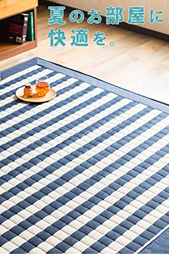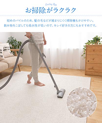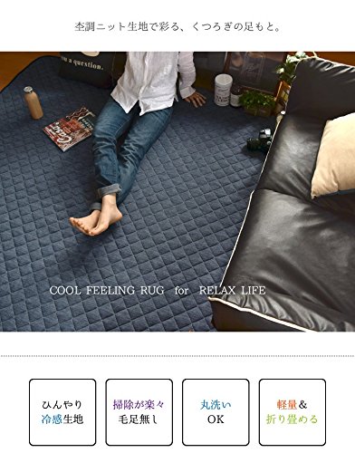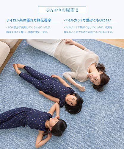 パイル生地でふわっとした感触の敷物で、リビングなどのフローリングにおすすめです。お子さんが寝転んでも安心の大きさと素材で、暑い夏でも家族で快適に過ごせます。