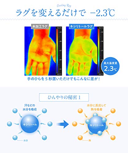 品質にこだわる人におすすめな、日本製の涼感ラグです。肌に直接触れる敷物は、日本製が信頼できて安心です。汗などの水分に反応する「キシリトール加工」で熱を奪ってくれ、涼しさを体感できます。