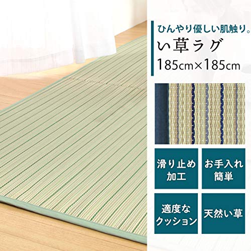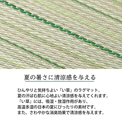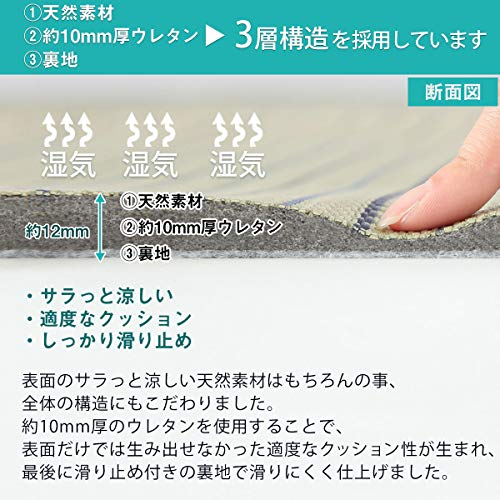 夏に涼しい感触で天然素材が嬉しい、い草のラグマットです。い草マットの裏側は滑り止めが付いていて、使っている最中にラグがずれて滑って転倒しまう事故を防ぐことができます。