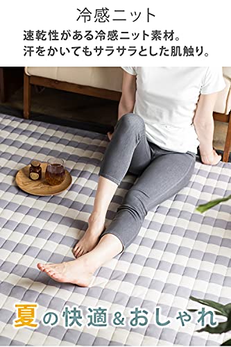 ベーシックなボーダーがおしゃれなデザインの、夏に涼しいラグマットです。速乾性のあるニット素材は肌触りが優しく汗を吸い取ってくれるので、汗をかきやすい夏にぴったりです。価格が安いのもおすすめポイントです。