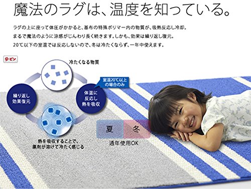 暑い夏に触れると綿の絨毯よりも6度涼しく感じるという、新素材を使用した絨毯です。絨毯の上に座ると反応する特殊な成分により、夏は涼しくひんやりと感じることができます。20度以下になると反応しなくなる素材のため、冬は寒くならず、一年中快適に使える絨毯です。