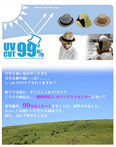 つばが一般的なハット帽と比較してはるかに大きな麦わらハット帽子になります。紫外線カット率は90%以上と高い水準の帽子で、夏の強い日差しをしっかりと顔全体や首元まで遮られる為、海水浴やプールサイドなどでも安心して被れます。