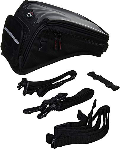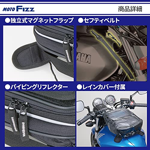 コミネのサイドジッパーを開閉することで、容量が5.2リットルから7.8リットルに広がるタンクバッグです。マグネットによる取り付け以外にベルトが付属しているので、樹脂製のタンクやバッグシートにも取り付け可能で、バイクに傷をつけたくない人にもおすすめです。