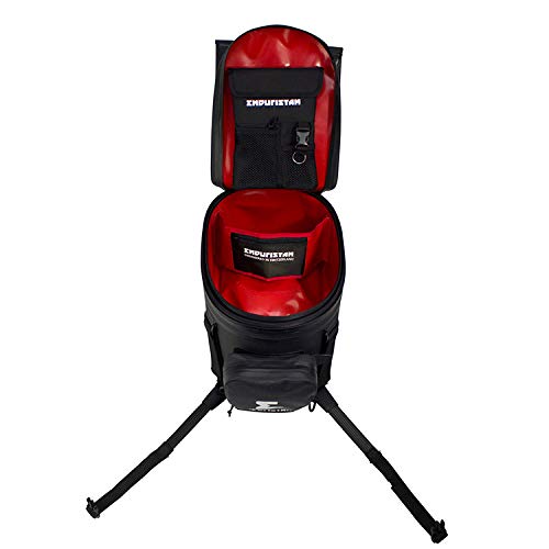 独特の形状はスポーツバイクにも違和感なくフィットし、アタッチメントを介して装着するためタンクを傷つけることもありません。タンク装着のため、ニーグリップの妨げにもならず快適に運転できます。また、エレクトリックトップリングキットが付属されており、バイクからケーブルを通して中に入れたスマホなどにも給電できます。素材には厚手の1680デニールナイロンを採用しており、防水対策も完璧です。