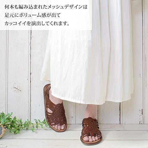 編み込まれたメッシュのデザインがかわいい!カジュアルサンダル。流行りのぺたんこサンダルで今年のカジュアルシーンは決まりです。