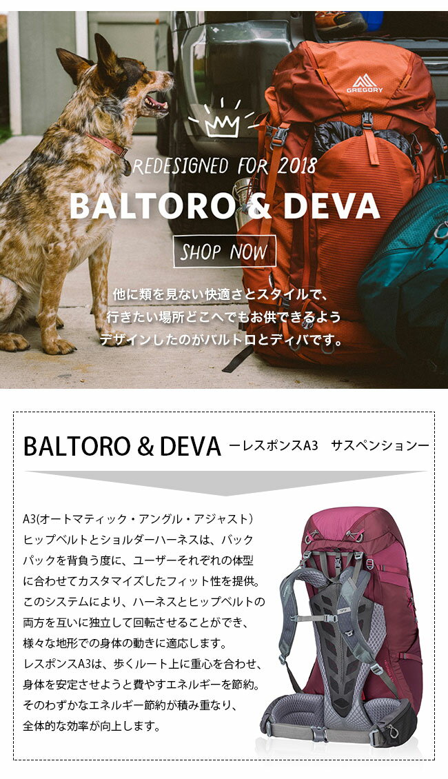 元々グレゴリーのザック製造技術は素晴らしく、製造されるザックはバックパック界のロールスロイスと評される程優れている物でした。そのイメージの如く、グレゴリーザックは内部構造を使用者に合わせることによってサイズの大きい大型ザックに関わらず使用者にフィッティングして心地よいのです。又バルトロとはメンズ用、ウィメンズ用としてはディバという名前で販売されています。