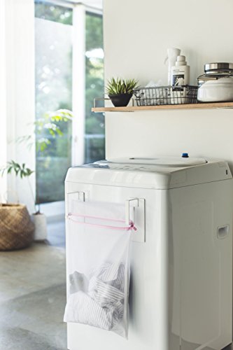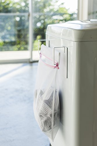 洗濯機に洗濯ネットを取り付けて置く場合、洗濯ネットの口があいていると洗濯物を入れやすくて便利です。マグネットで取り付けできるハンガーを使うと、すっきり簡単に好きな位置に設置できるのでおすすめです。