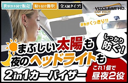 2個セットで昼夜兼用で使えるビスクリアHDサンバイザーは、自動車運転中の光による眩しさや太陽光からの紫外線を防ぎ、いつでも視界がクリアな状態に保たれて快適な運転ができる人気の偏光サンバイザーになります。