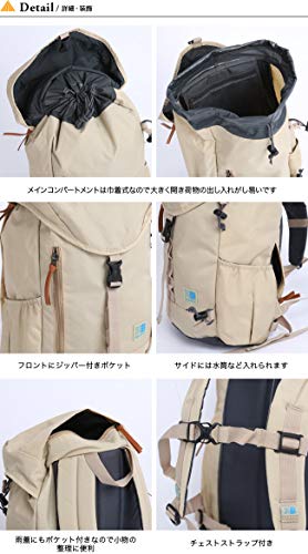 メインコンバートメントは絞って閉じる巾着式を採用しているリュックサックになりますので、大きく開けて荷物の取り出しも簡単に出来る特徴があります。さらに上から雨よけや砂埃を入り込ませないフラップを被せられる為、安全に荷物を管理しておく事ができます。フロント部分には縦に開けるジッパーポケットも付いていますので、頻繁に使う小物を管理しておくのに便利です。