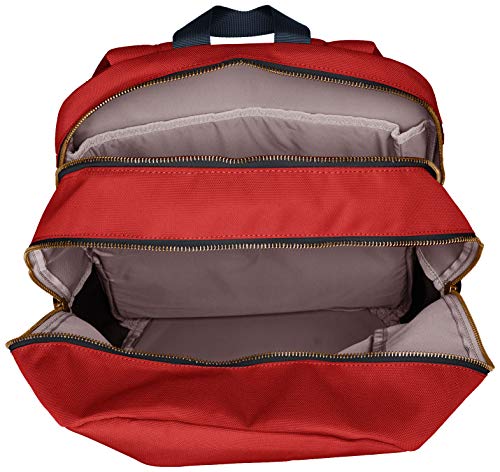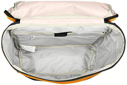 底面部分には磨耗性の高い異なる色の生地を使っているバックパックです。バックパックの正面側にはブタ鼻やブランドのワッペンを施して可愛らしさもプラスされています。内部には小物収納に便利なジッパーポケットやメッシュポケットも付いています。