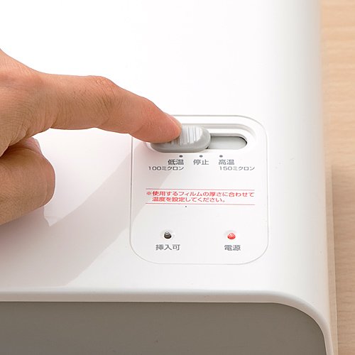 こちらはアスカメーカーの業務用製品です。ローラーが四本付いたタイプなので、先ほどご紹介した物よりもヨレやしわの心配が少なく利用できます。また、フィルムの厚さが250㎛と、他の製品と比較しても厚みのあるフィルムが加工できます。