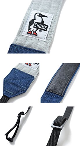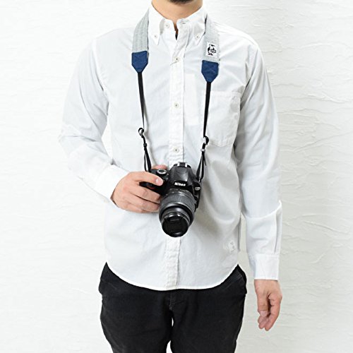 大人の女性に人気のマイクロ一眼レフカメラにもよく似合う、チャムスのブービーバードロゴが施されたカジュアルデザインのカメラストラップになります。