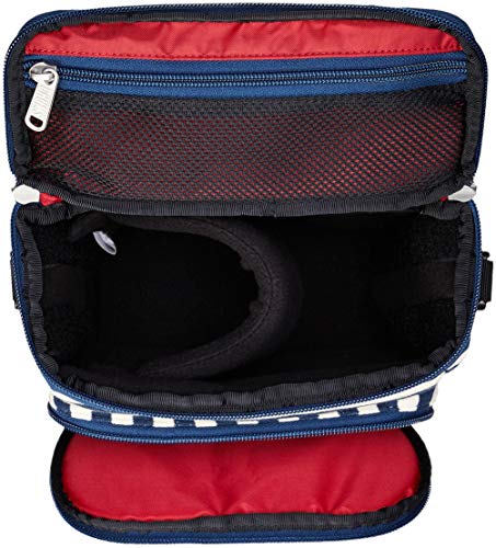 フロントや蓋裏にも小さなカメラアクセサリーを収納できるポケットも付いています。またフロントポケットには野球ヘルメットを被ったチャムスの可愛いブービーバードデザインが施されています。