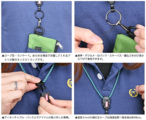 耐久性の高いナイロンコードを使っており、小さなミニケースと併用すればコンパクトデジタルカメラも首元から下げられて便利なネックストラップです。カラーバリエーションが豊富なストラップで、男女共に使いやすいデザインです。