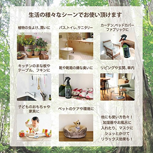10種類以上の樹木から抽出したエキスをブレンドして作られたスプレーで、小さなお子様のいるご家庭の方やペットを飼っている方にも安心して使うことが出来ます。