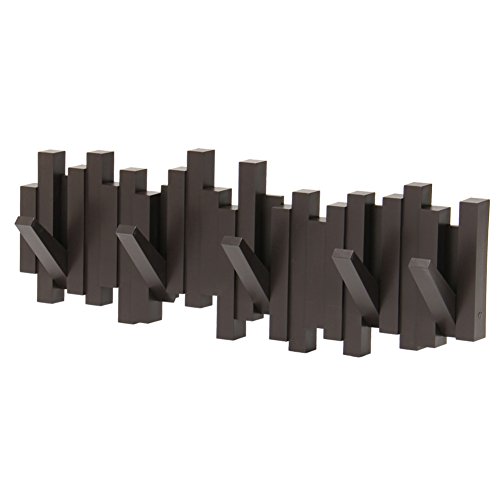 こちらの帽子掛けは、壁にアンカーとビスで接着するタイプの帽子掛けです。フックは五つで、使っていない時はしまっておくことも可能。カラーは画像のエスプレッソとホワイトの二色展開です。サイズは49x3x18cm。スティックが並んだような、おしゃれな壁掛けフック。帽子の飾り方にも凝りたくなるような素敵なデザインです。