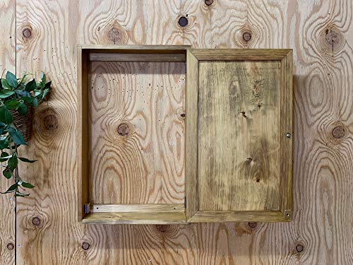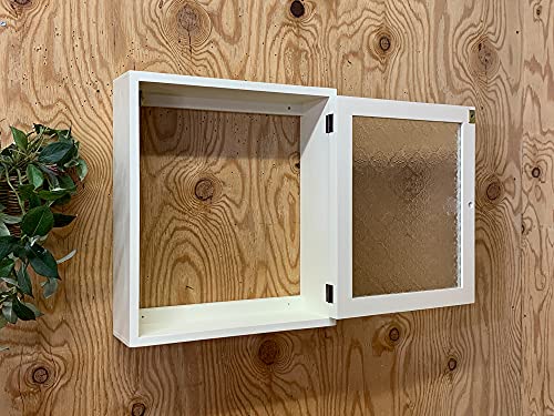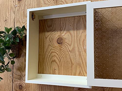 こちらはアンティークな雰囲気もあるナチュラルな木枠と磨りガラスが素敵な既製品のインターホンカバーです。表面がガラスになっていることで、扉を閉めたままでも中のモニターが点灯しているのを確認できます。