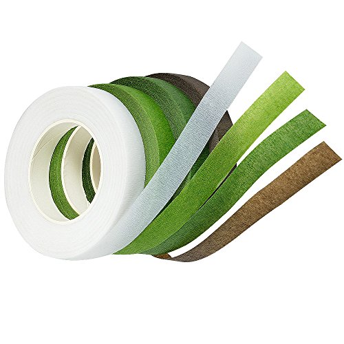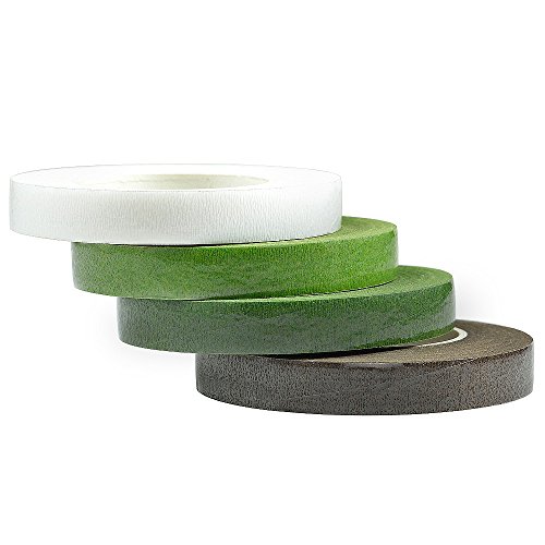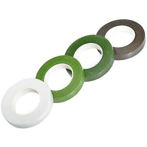 フローラテープは、造花などの工作用に作られた、少し伸縮性があるマスキングテープのようなもの。それ自体はあまりベタベタしないのに、テープ同士だと結構しっかり接着してはがれにくい。紙製ですので、手で簡単にカットすることもできます。花作りには、1巻持っていると便利。