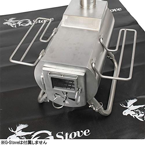 ちょっとしたサイズ感を希望するなら、スクエア型の防火マットです。こちらのオプションもg-stoveのロゴが入った専用で、素材はファイバーグラスが使われて、薪ストーブの500度の高温にも耐えます。テント内などスペースが狭い場合には、小型のサイズのほうが使いやすそうです。
