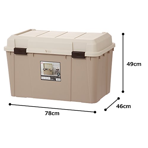 ベランダ収納のサイズは、78×46×49cm。素材はポリプロピレンでできています。コンテナ収納には南京錠が取り付けられるようになっているので、マンションなどの賃貸でも安心して設置可能。アイリスオーヤマのコンテナ収納には、サイズも種類があるので入れるものに合わせて購入してください。防水加工について記載はありませんでしたが、蓋つきなのである程度の雨であれば問題ありません。