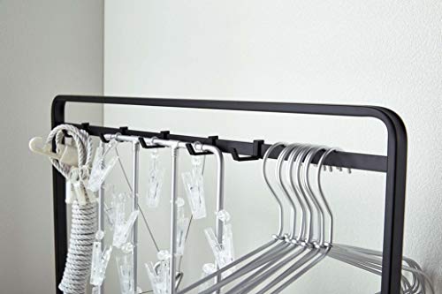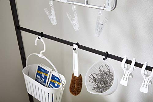 こちらの商品サイズは73×35×140.5cmです。色は白と黒があり、スチール素材でできています。キャスター付きなので移動も可能。屋内でも、屋外でも使えるタイプなので使う用途に合わせて利用してください。小さいフックは全部で10個。他に大きいフックが一つ付いています。収納の下には物を置けるスペースもあるので、そこにバケツやボックスなども置くことができます。