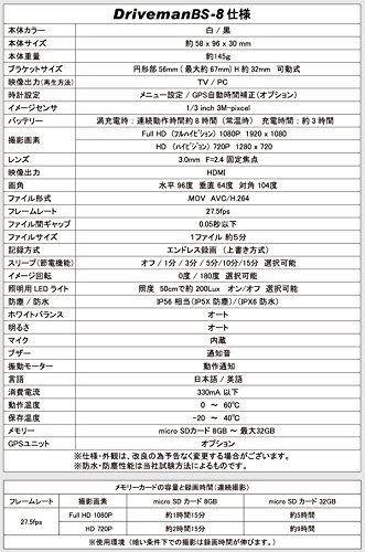 | 記録媒体 | Micro SDカード(8G ~32G) |