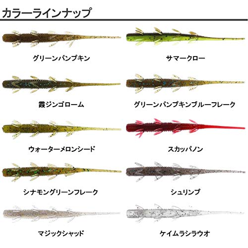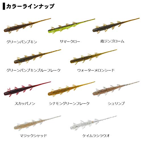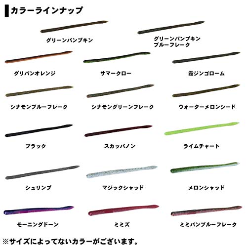 ラインナップは3.4インチのみ。カラーは10色となっています。ローアピールのコンセプトに合わせて、「マジックシャッド」や「ケイムラシラウオ」といったクリア系のカラーが充実!ラインを軽く張る程度の放置を入れながら、タフったバスを攻略しましょう。オフセットフックが使えるサイズです!