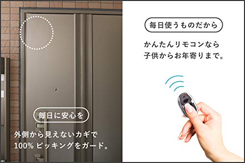 こちらをドアカメラなどと併せて使用すると玄関まで行かなくてもドアの開錠が出来てしまうので非常に便利に使用出来ます。また開錠用のリモコンも最大16個まで登録できるので家族全員で安心して使えます。取り付け後はドアの外側からは錠の設置位置が見えない仕様になります。設置位置が分からない事のメリットは、外から簡単に補助錠を破壊されるなどの危険も少ない事です。リモコン式なのでキーを複製されるなどの心配もありません。子供からお年寄りまで安心して使用することが出来る補助錠になります。
