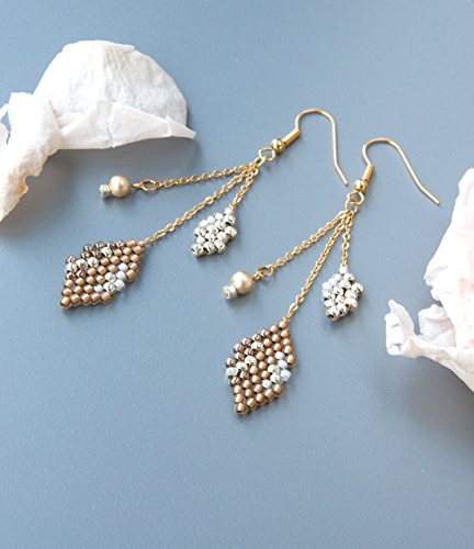 ビーズ手芸はテグスワークから入る方も多いでしょう。ピンなどを曲げて作るアクセサリーもゴージャスなのですが多少コツが必要になってきます。そのために金属のピンを一切使わずに、テグスとつぶし玉を使うことで初心者の方にも簡単にかわいいピアスを作ることができるのです。