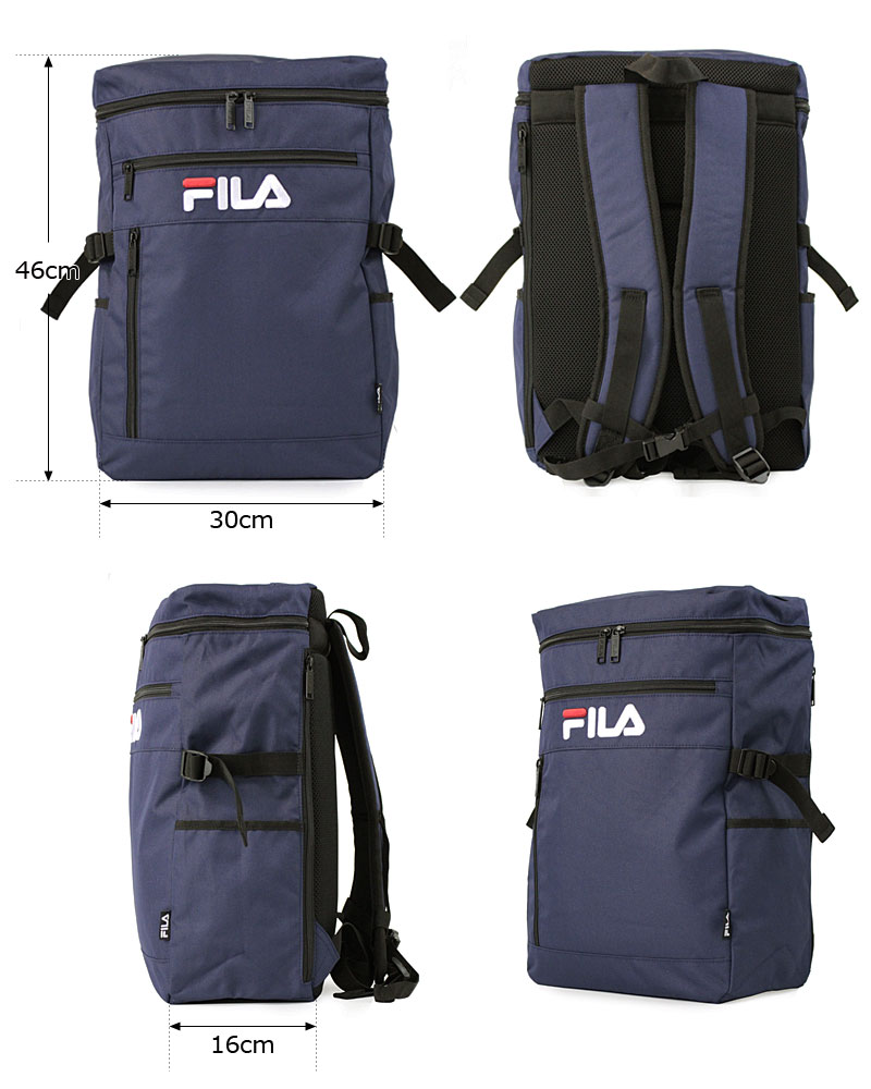 人気のスポーツブランド『フィラ』の大きいブランドロゴがフロントに大きく刺繍されたかっこいいデザインで、四角い形状でスポーティな印象も感じられるスクエアリュックです。落ち着き感が感じられる、かっこいい3色から決められる流行りのリュックサックです。