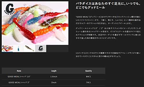 「グッドミール シャッド」は1.5インチと2インチの2サイズ構成。針の大きさ、魚の大きさに合わせて選ぶイメージで使い分けます。とにかく1匹釣ってみたい方には、一口サイズで小型までフォローしやすい1.5インチがおすすめ。人気のアジング、メバリングでもほとんどのアイテムが採用している、ソルトライトゲームの定番サイズです!