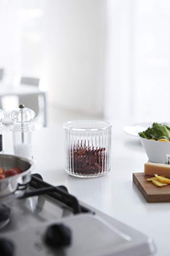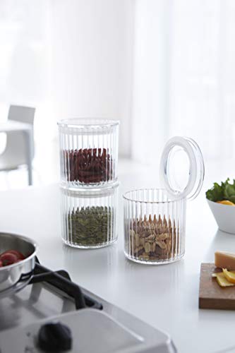 縦のラインが光を美しく透過させる、洗練されたデザインのキャニスターです。デザインを始めとして、お求めやすい価格なのも魅力となっています。容量は500mlのSサイズで、調味料やナッツなどの乾物、お菓子を入れておくのにぴったりです。カラーは無色クリアのほか、ブルー、ピンク、イエロー(いずれも透明)もあります。
