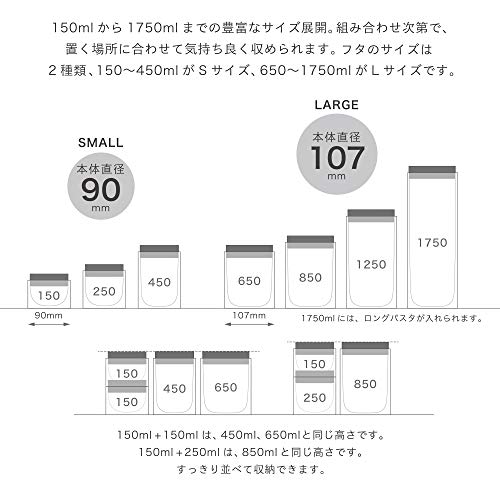 スタッキング可能な円筒型のアクリル樹脂製キャニスターです。落としても割れにくく、サイズは150ml~1750mlまでと豊富な種類が揃っています。スタッキングのパターンもさまざまで、ユニークな発想のアイテムです。中身が取り出しやすい広口で透明なので、中の食材やスパイスをきれいに見せてくれます。