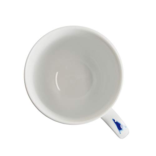 直径8.5cmx高さ9.5cmの大きさです。重量は190gと軽量に仕上がっています。容量は300mlとなっています。ファイン・ボーン・チャイナを材料に使って焼き上げた陶磁器ですので、白が透き通ったマグカップになっています。イギリスで生産されています。