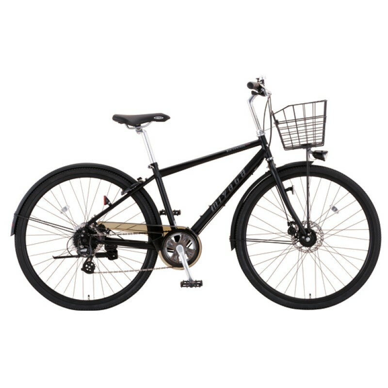 おしゃれなクロスバイクになります。荷台はなく、やや大きい前カゴが付いているので、通勤時のカバンも入れられます。前輪後輪共に泥除けも付いていますので、タイヤにも汚れが付きにくく、お手入れも楽です。