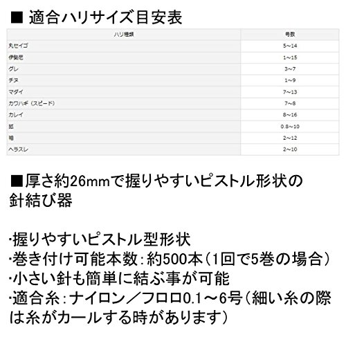 もちろん針とハリスは自分の手で結束できることに越したことはありませんが、一つ持っていると便利なのが「針結び器」です。今はこの手の商品も数多く出ていて、500円位の外国製のものから1000円前後の電動式のものなどもあります。使い易い物を購入すれば良いのですが、これに頼ってしまうと、電池が切れたり落下で壊れたりと予期せぬ失敗もあります。基本のノットだけは最低限覚えるようにしましょう。