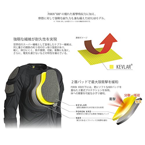 衝撃を受けると同時に瞬時に硬化するパッドで、衝撃エネルギーを最大90%も吸収してくれます。身体の動きに合わせて伸縮する素材も使われていますので、窮屈感を覚えずに快適に身につけていられるプロテクターです。