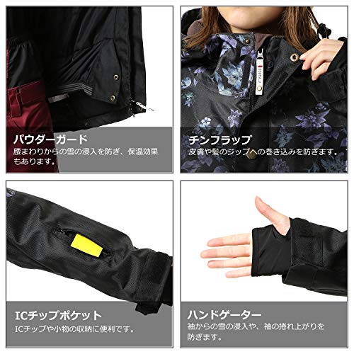 胸元にもジッパー開閉できる収納ポケットがありますので、リフト券などを入れておくのに役立ちます。袖口はマジックテープ留めできる仕様なので、冷気が入ってこないようにしっかりと閉じられます。フロントファスナーは上までしっかりと閉じられるので、首元に風が当たらないように出来ます。ファッション性豊かなレディースの人気ジャケットです。