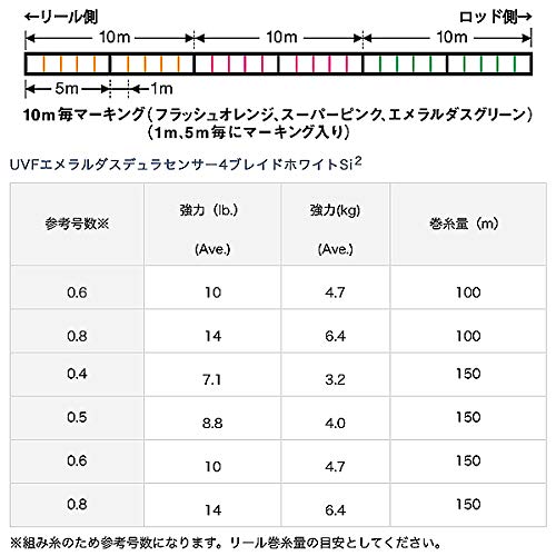 エメラルダスシリーズが人気のダイワ2019年新製品です。4本縒りと8本縒りの2グレード展開で、4本縒りは初心者の方にもおすすめしやすい手ごろな価格設定。耐摩耗性を高めた新構造で、岸壁や壁際を狙う釣り方にもバッチリ使えます。10mごとの色分けで、キャスティングゲームも遊びやすい!今年度のおすすめ入門向けラインです!