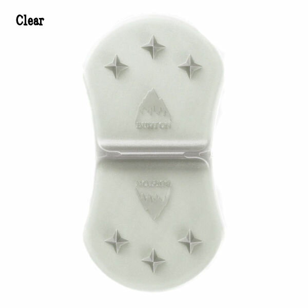 まずは定番バートンのスノーボード板用のデッキバッドから。カラーはクリアとブラックダイヤモンドコンパクターの2色。こちらはシリコンのパッドに金属製のスパイクがついているのが特徴。しっかりブーツを固定してくれるので足置き位置に貼ることで滑り止めとして大活躍してくれるでしょう。