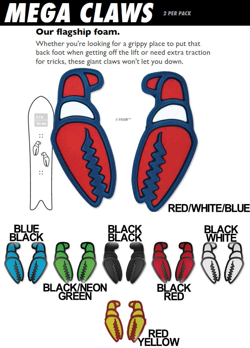 かっこよさだけでなく、面白いユニークな形にも人気があります。エビのはさみのような形をしたデッキパッドは毎年ニューモデルが出るくらい定番の人気商品。