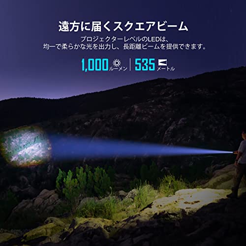 こちらのLEDフラッシュライトは、1000ルーメンという高性能を搭載。遠くまで照らすことができるので、夜道も安心して利用できます。