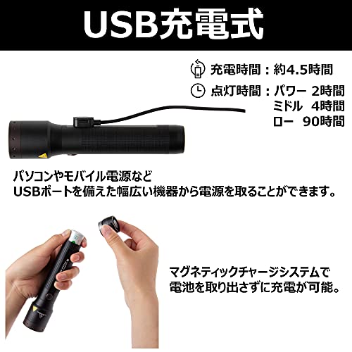 こちらのLEDフラッシュライトは、高い防水性を備えています。また、マグネットを使用したワンタッチ充電を採用しており、電池を取り出すことなく充電が完了。