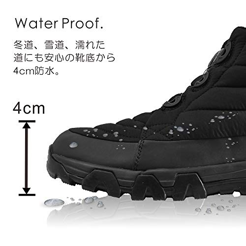 4㎝の厚底となっているため、雪道や濡れている道も問題なく使用できる防水加工です。靴の内部には暖かい裏起毛素が施されていて、防寒防雪機能も充実しています。雨に強いうえ暖かいです。