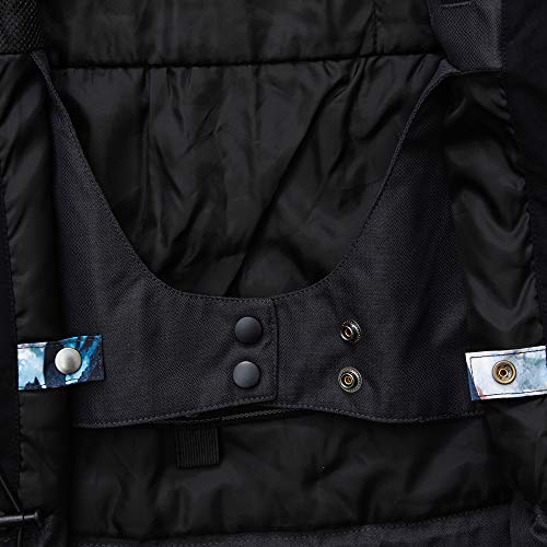 サイズはXSからXLまで6種類と豊富。カラーはブラック・ホワイト・レッドのほか迷彩柄と迷彩柄ホワイトもあります。15000mm/10000g生地で防水性能もバッチリ。パウダーガードはウエストや袖口に配されており、スノボだけでなくスキーウェアとしての利用も考えて作られています。
