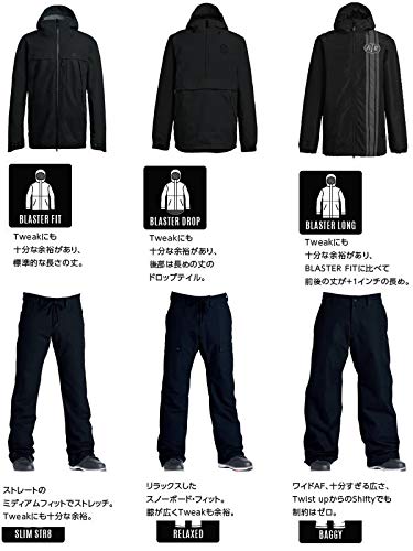 かつては、スキーウェアよりもかなり大きなサイズ感のジャケットがスノボウェアとして流行りました。スキーウェアはタイトでストレッチが効いている作りに比べて、スノボウェアはダボっとしてルーズなシルエットが特徴的でありました。
