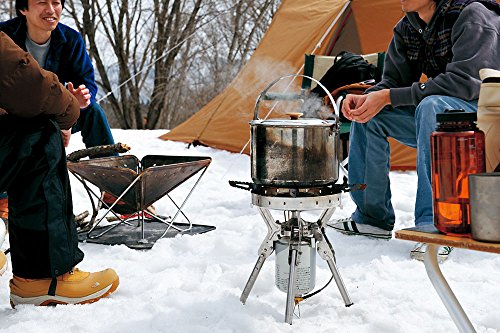ユニフレームの中でも軽量なのにどんな鍋にも対応できると人気なのが、このコンロです。ガス缶も通常のガスボンベを使うのでとても便利だと評判です。通常のアウトドアコンロのシングルだとダッチオーブンなどの重たい鍋は乗せられないことが多いですが、この商品は、すでに五徳がついていて安定した作りになっているので、ダッチオーブンを乗せることも出来ます。このままテーブルなどに乗せて料理を温めながら食べるのもおすすめです。小型なのに他と比較しても重たい重量にも対応できるタイプのバーナーです。